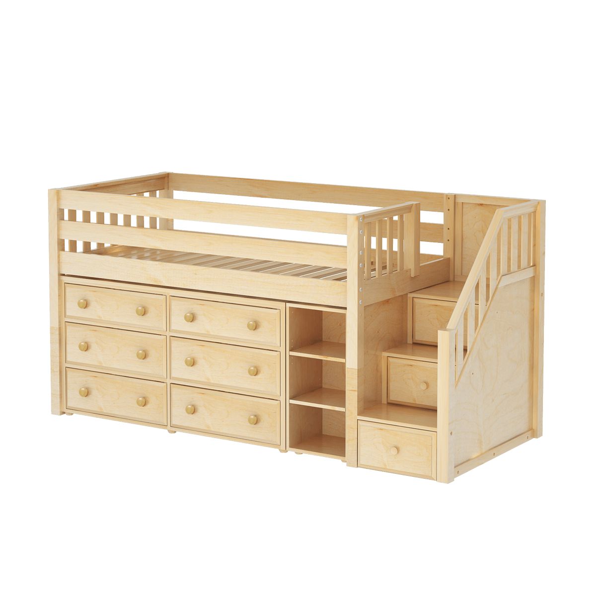 Maxtrix Twin Low Loft Bed with Stairs with Storage