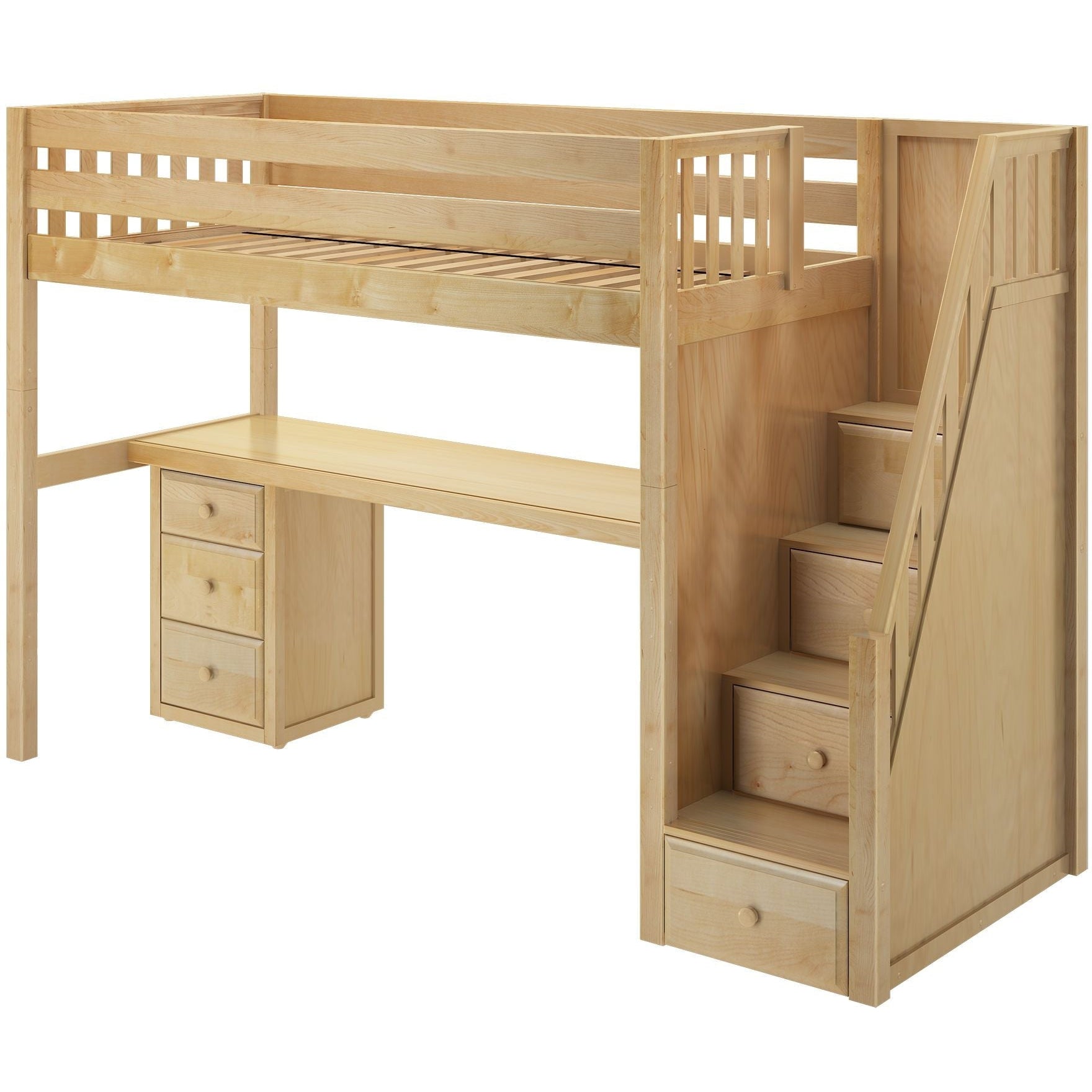 Maxtrix Twin High Loft Bed with Stairs with Long Desk