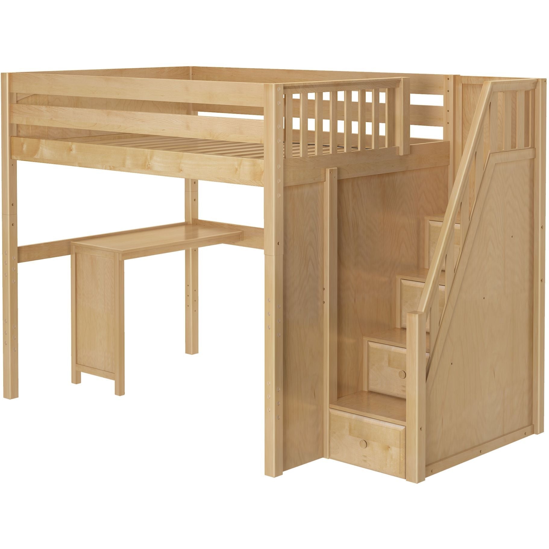 Maxtrix Full High Loft Bed with Stairs + Long Desk
